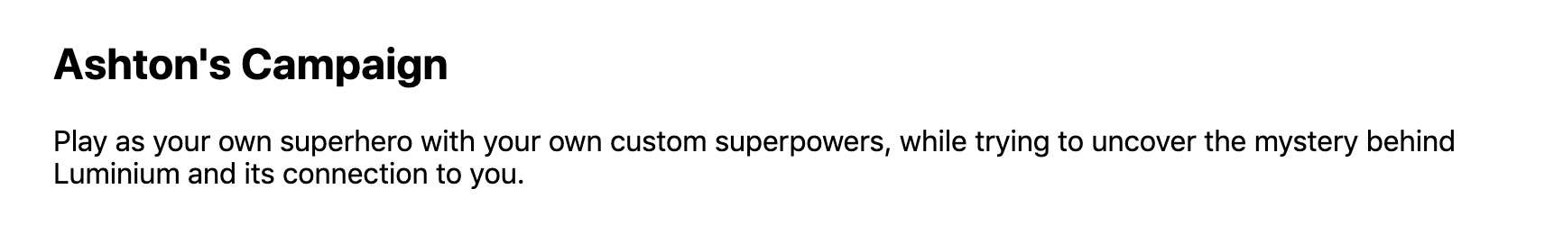 This is one of the most important things you’ll find on this page. The description is what the DM has written to let you know what kind of adventure you’ll be going on. If you have a favorite setting (e.g. pirates or space-themed) or you wanna know what your party will be up against, this is where to find that. Be sure to keep in mind the stats above too! If you’re not into zombies usually but you see all their stats are your style, you might be surprised at what a fun time you can have!