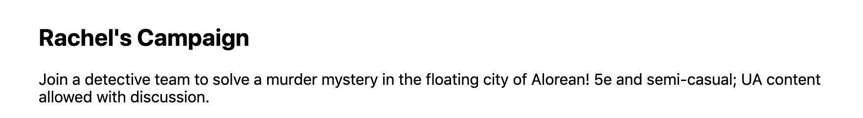 We try to tailor our DM sign-ups to have all the information a DM might need, but occasionally we leave out certain details or the DM has something game-specific they want you, the players, to know. Not every DM will provide notes for their campaign, which is okay. That usually means all the info you need is above! The notes section can have helpful information about the campaign!